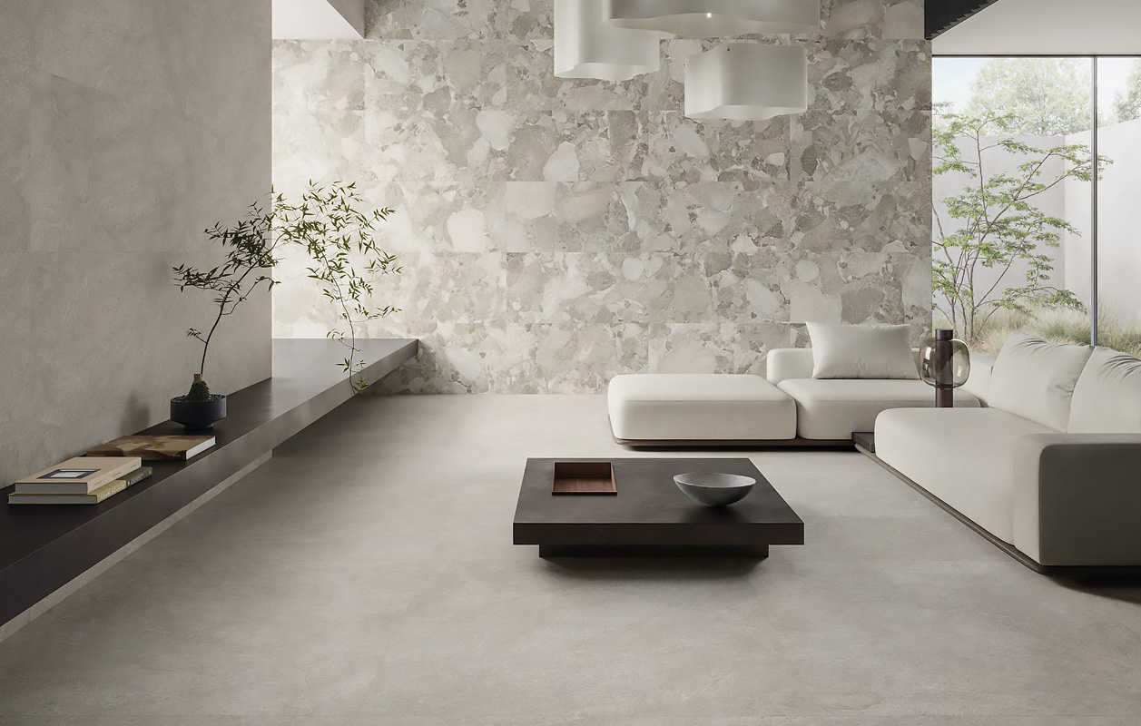 Originating from a carefully selected unique, primordial block of stone, MATERASTONE tells a story of innovation, design and refinement. Its surface is an attractive composition of pebbles of different sizes on a rarefied, neutral background. It is not just for floor and wall coverings. The collection perfectly blends the natural beauty of the inspiration stone with the technical and creative potentials of ceramics.